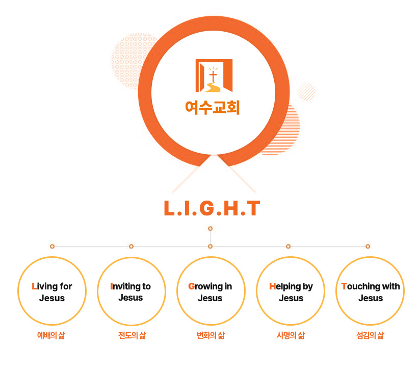 00교회의 로고는 좁은 문, 좁은 길을 걸으신 빛 되신 그리스도를 따라 사는 제자됨을 의미합니다. 십자가의 빛은 00교회의 Light Spirit을 뜻합니다. Living for Jesus (예배의 삶), Inviting to Jesus (전도의 삶), Growing in Jesus (변화의 삶), Helping by Jesus (사명의 삶), Touching with Jesus (섬김의 삶)을 추구합니다.